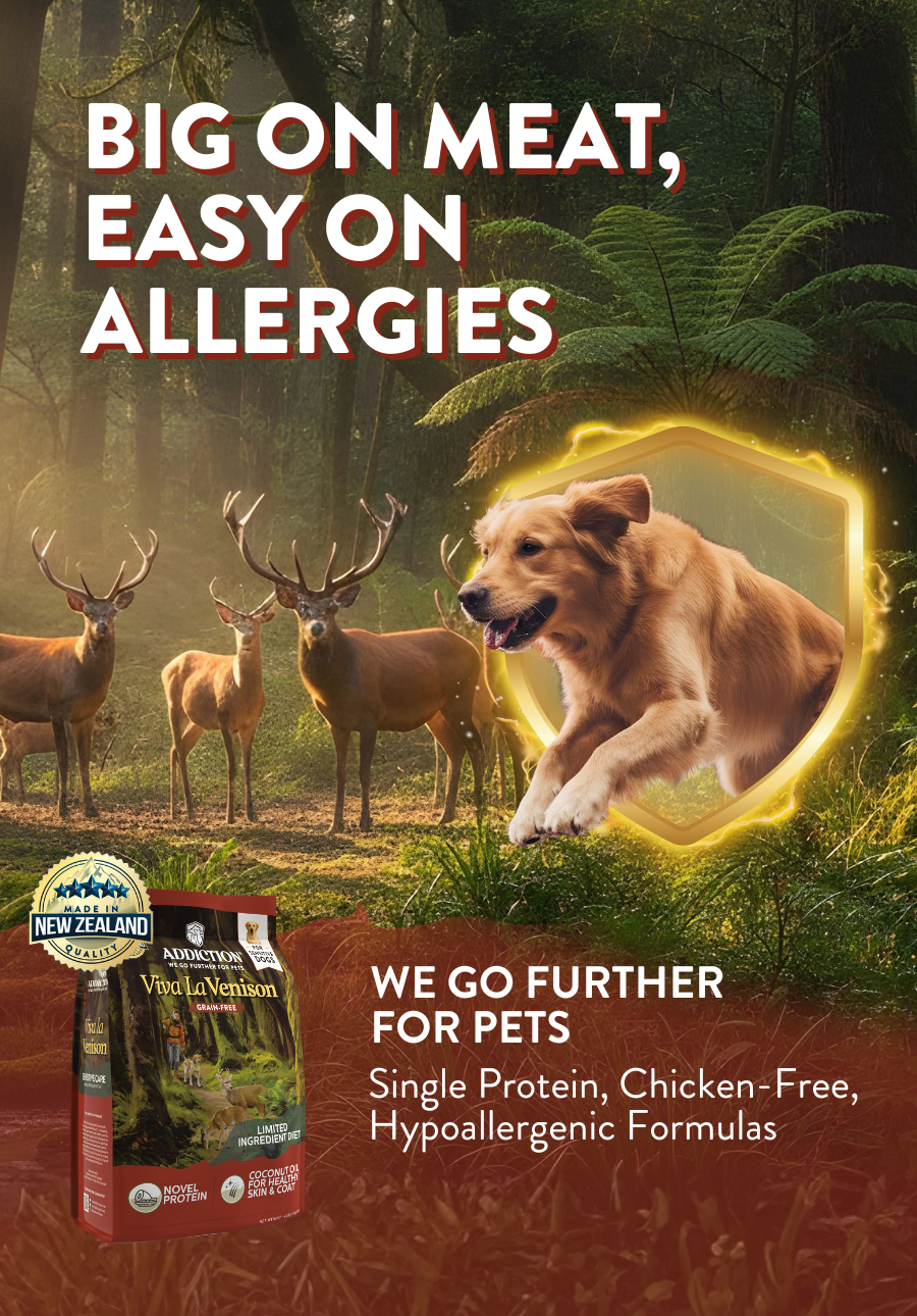 For small dogs with fast metabolisms and tiny appetites, Addiction Pet Foods’ Small Breed Range provides nutrient-packed meals tailored to their specific needs. Recipes like Le Lamb Grain-Free, Duck Royale Entrée, and Viva La Venison are designed to deliver high-energy nutrition in smaller portion sizes, with kibble perfectly sized for small mouths, making them easy to chew and digest.