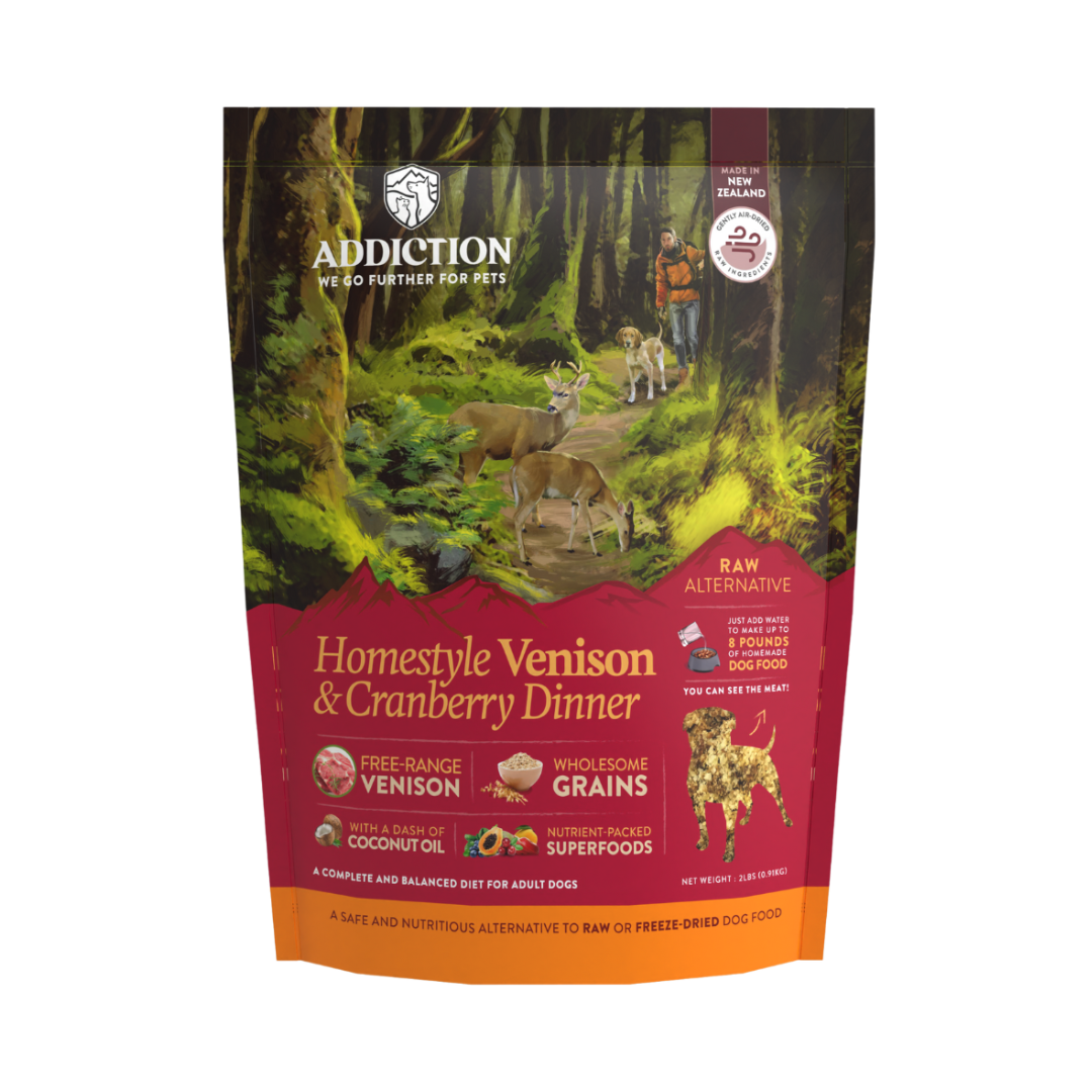 New Zealand is home to the highest-quality and sustainably-sourced venison, making it the perfect foundation for our Homestyle Venison & Cranberry Air-Dried Dog Food. This recipe combines premium, free-range venison with a vibrant medley of superfoods—carrots, flaxseed, papayas, cranberries, blueberries, mangoes, apples, and leafy greens—to deliver a meal that is both nourishing and delicious. The air-dried process gently preserves nutrients and flavor, resulting in a soft, “meat-muesli” texture that dogs love. This recipe is complete and balanced for adult dogs, but can also be used as a topper for all lifestages. Ideal for sensitive dogs, this formula is free from common allergens and offers flexible serving options to suit every preference.