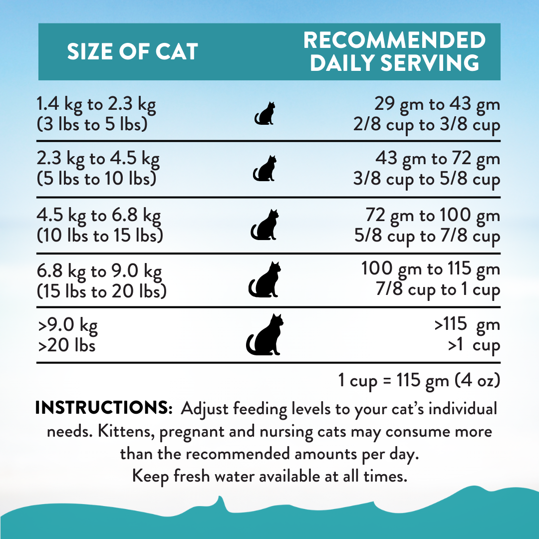 Transitioning to Salmon Bleu should be gradual, mixing it with your cat's current food to avoid digestive upset. Specific feeding guidelines based on your cat's age and weight can be found on the packaging.
