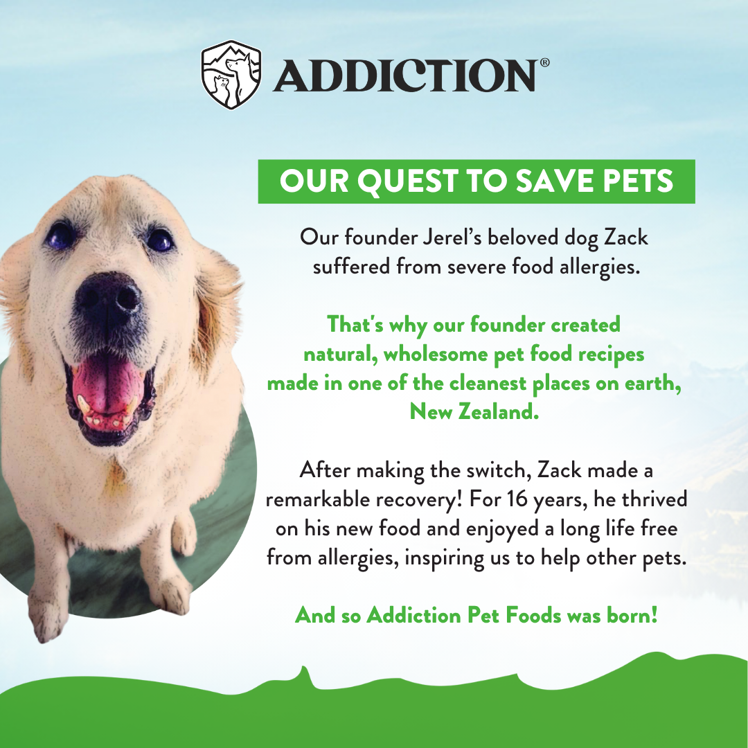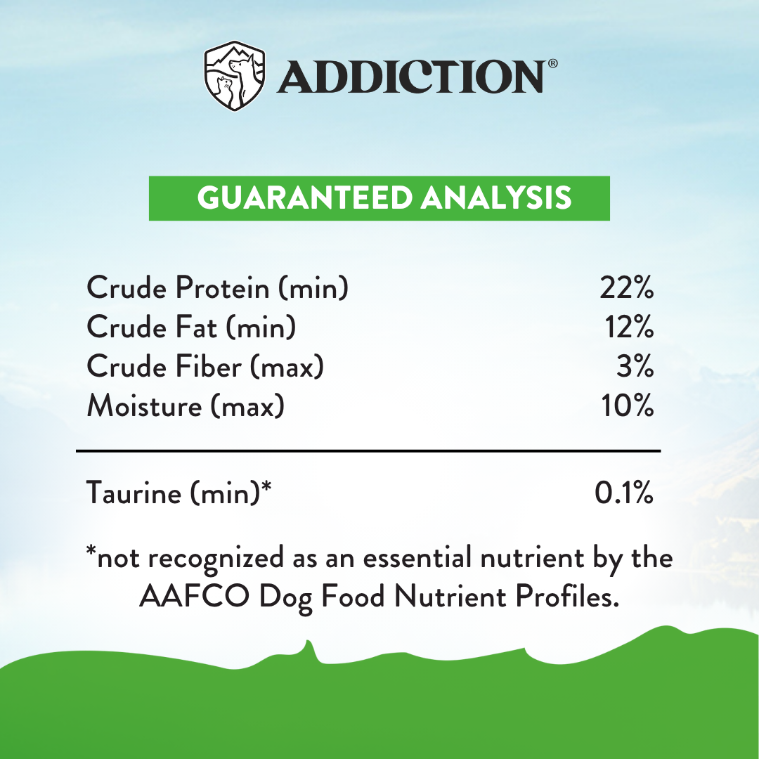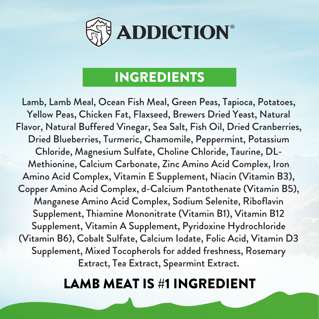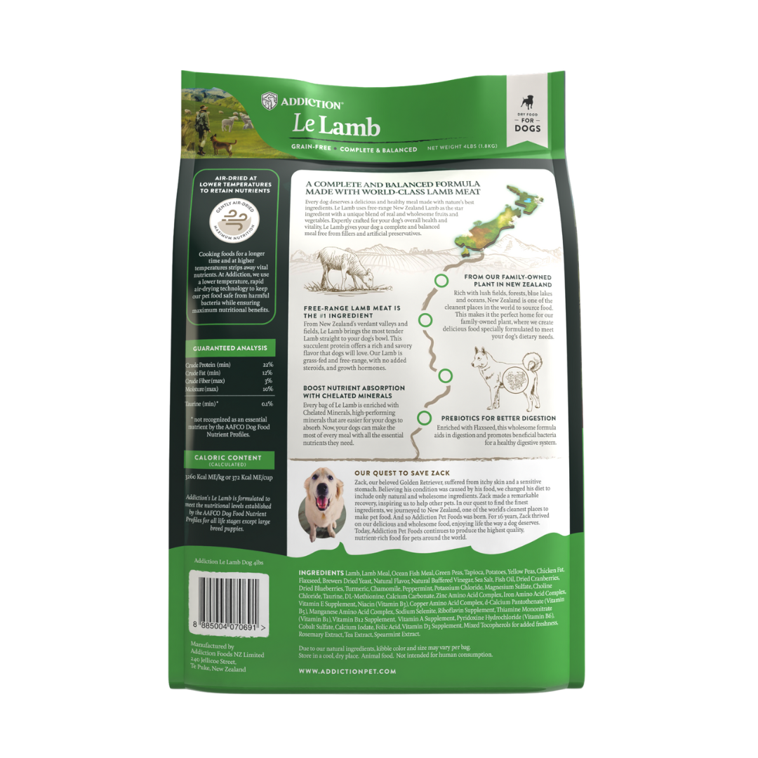 Every dog deserves a meal crafted from nature’s finest ingredients. Addiction's Le Lamb features premium, free-range New Zealand lamb as the star ingredient, blended with wholesome fruits and vegetables for a complete, balanced, and savory meal. Enhanced with prebiotics, chelated minerals, and taurine, this grain-free recipe is gently air-dried to preserve nutrients and flavor, making it ideal for dogs with sensitivities and discerning palates.