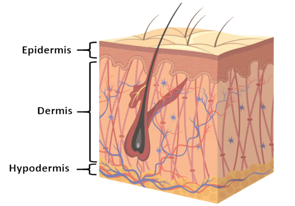 A cat's skin makes up around 12% to 15% of its total body weight. It consists of the epidermis, dermis, and hypodermis.